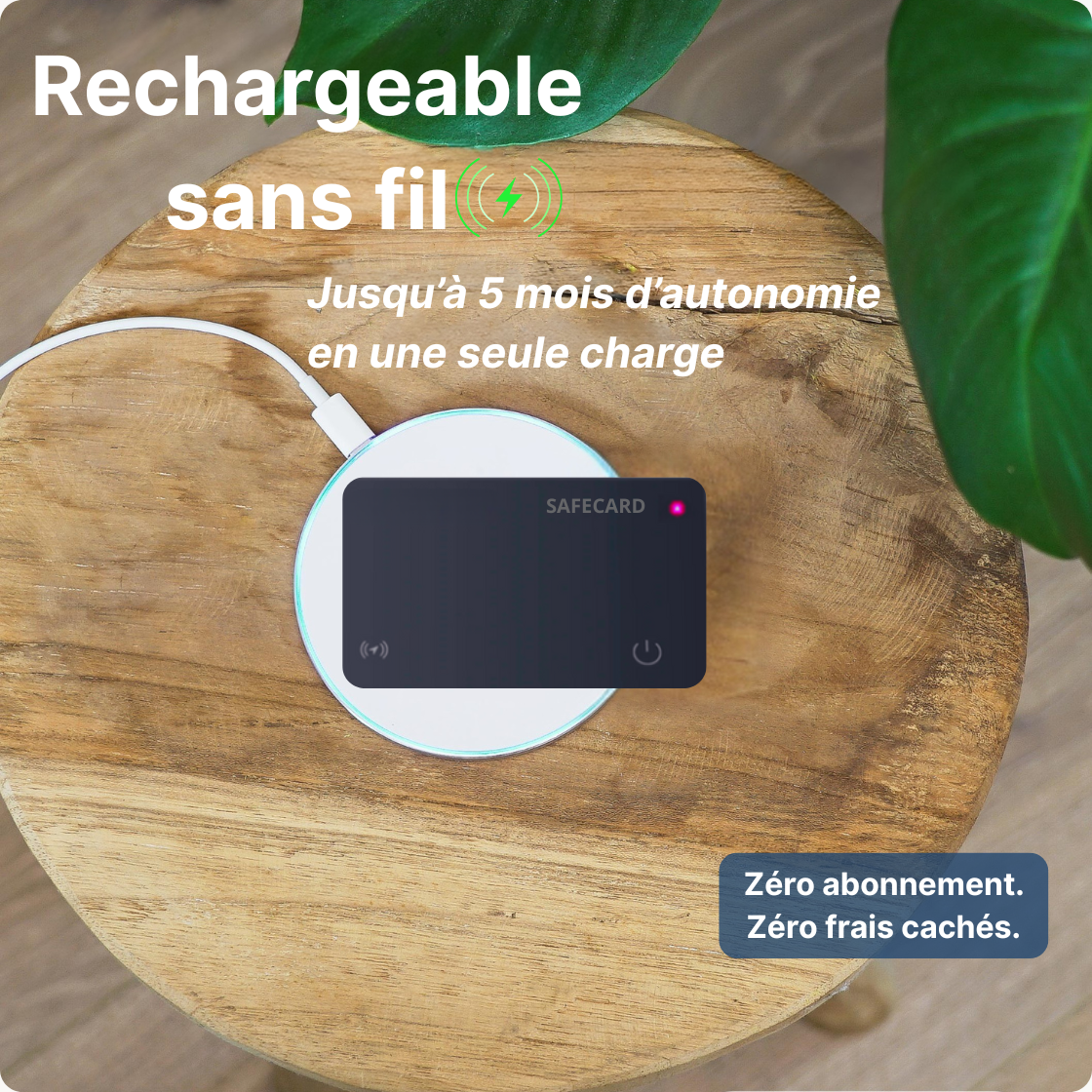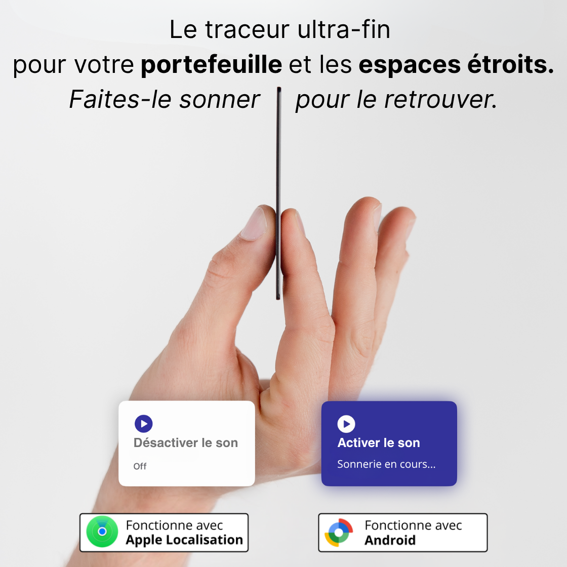 La carte traçable la plus fine au monde. Compatible Apple & Android. Rechargeable sans fil.
