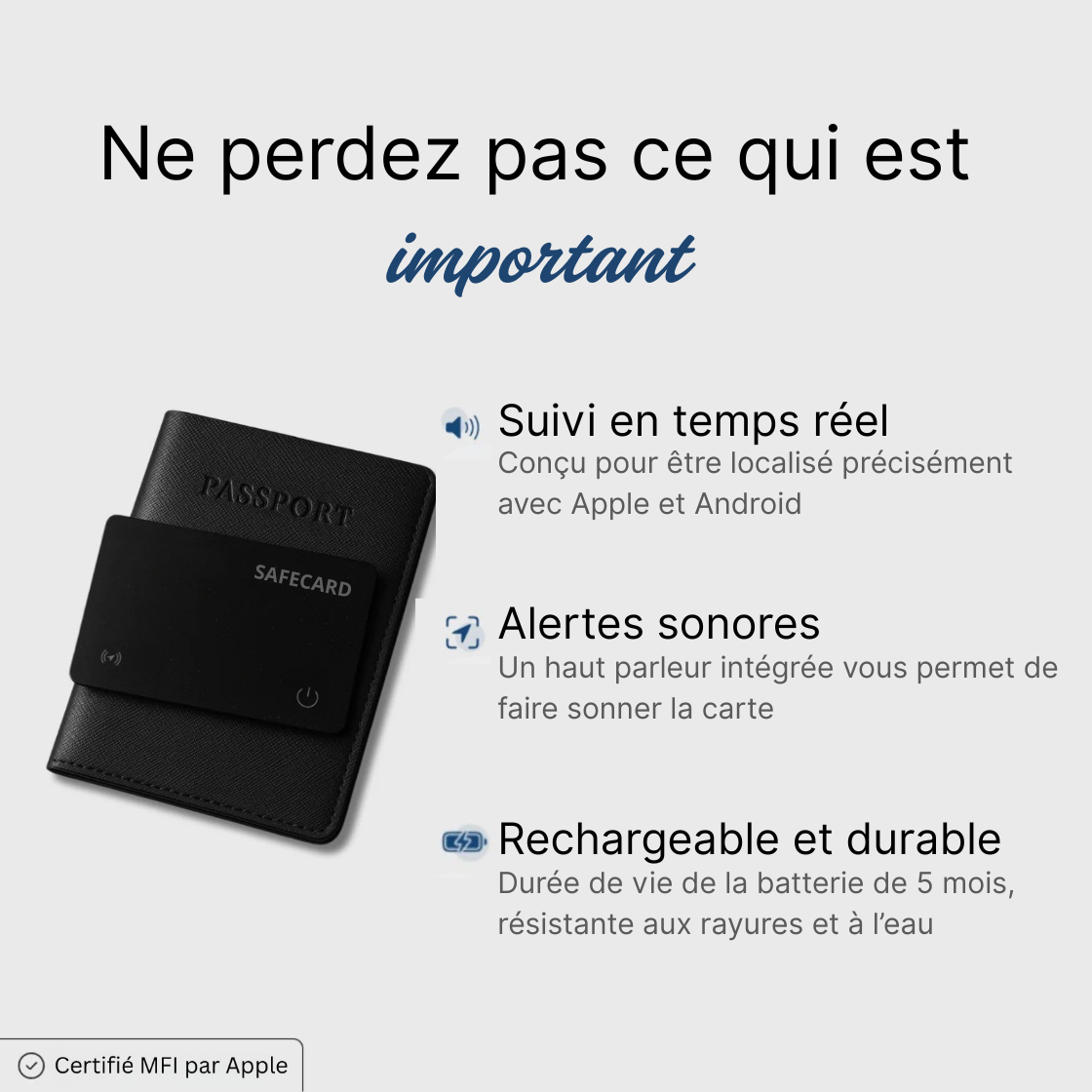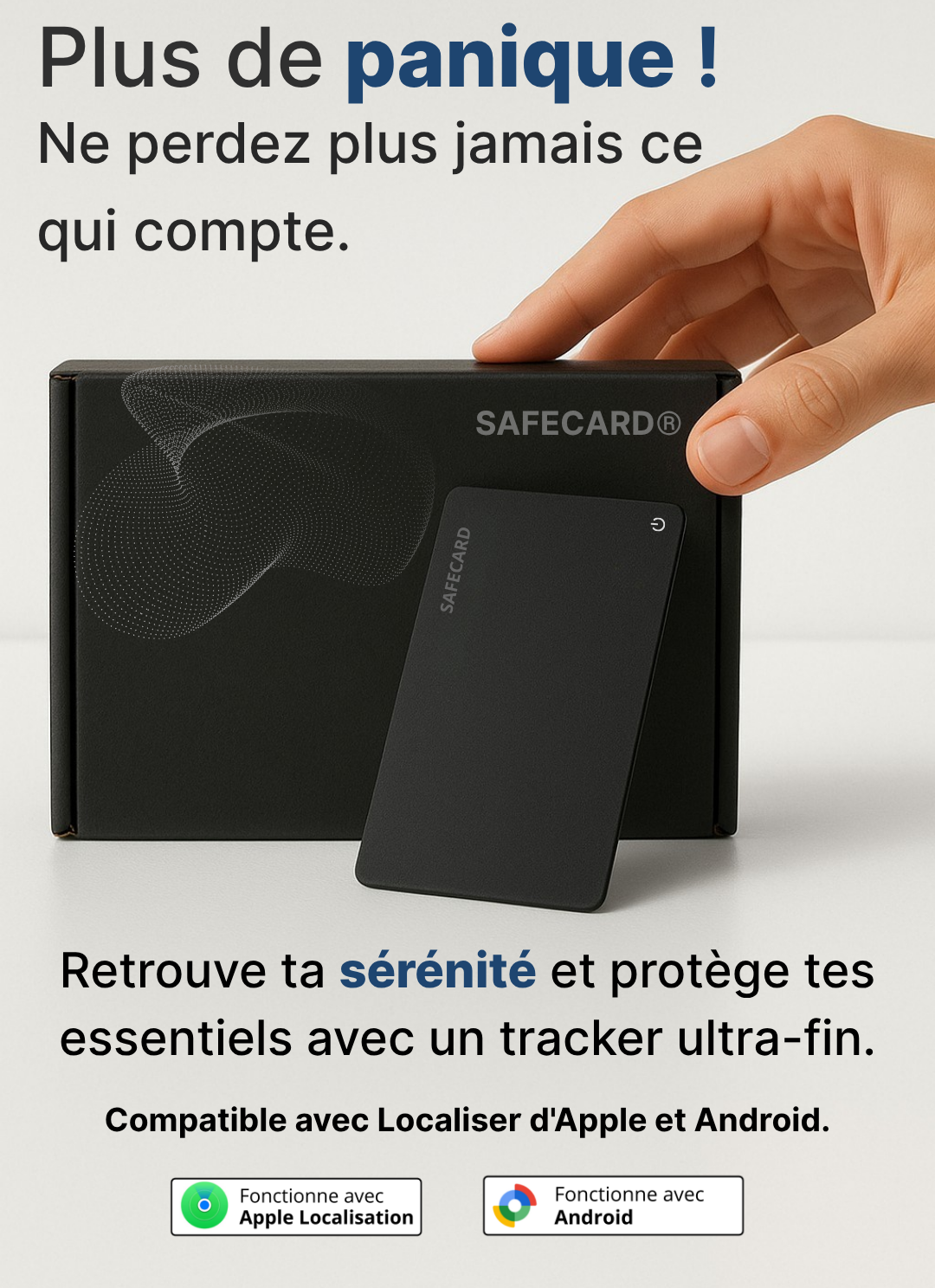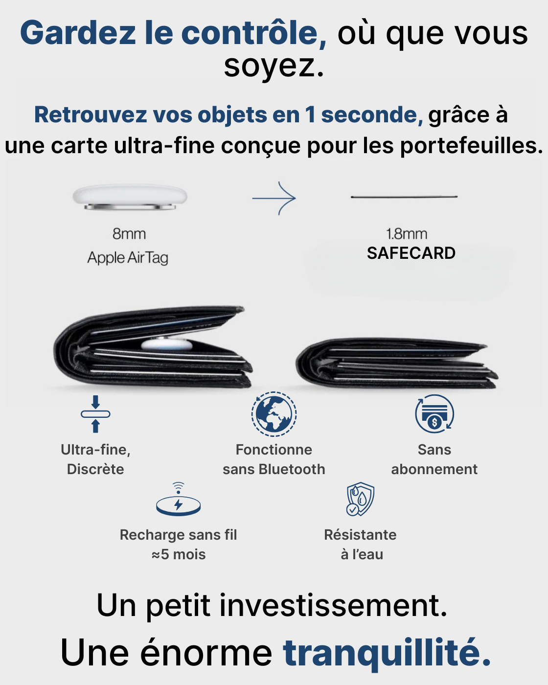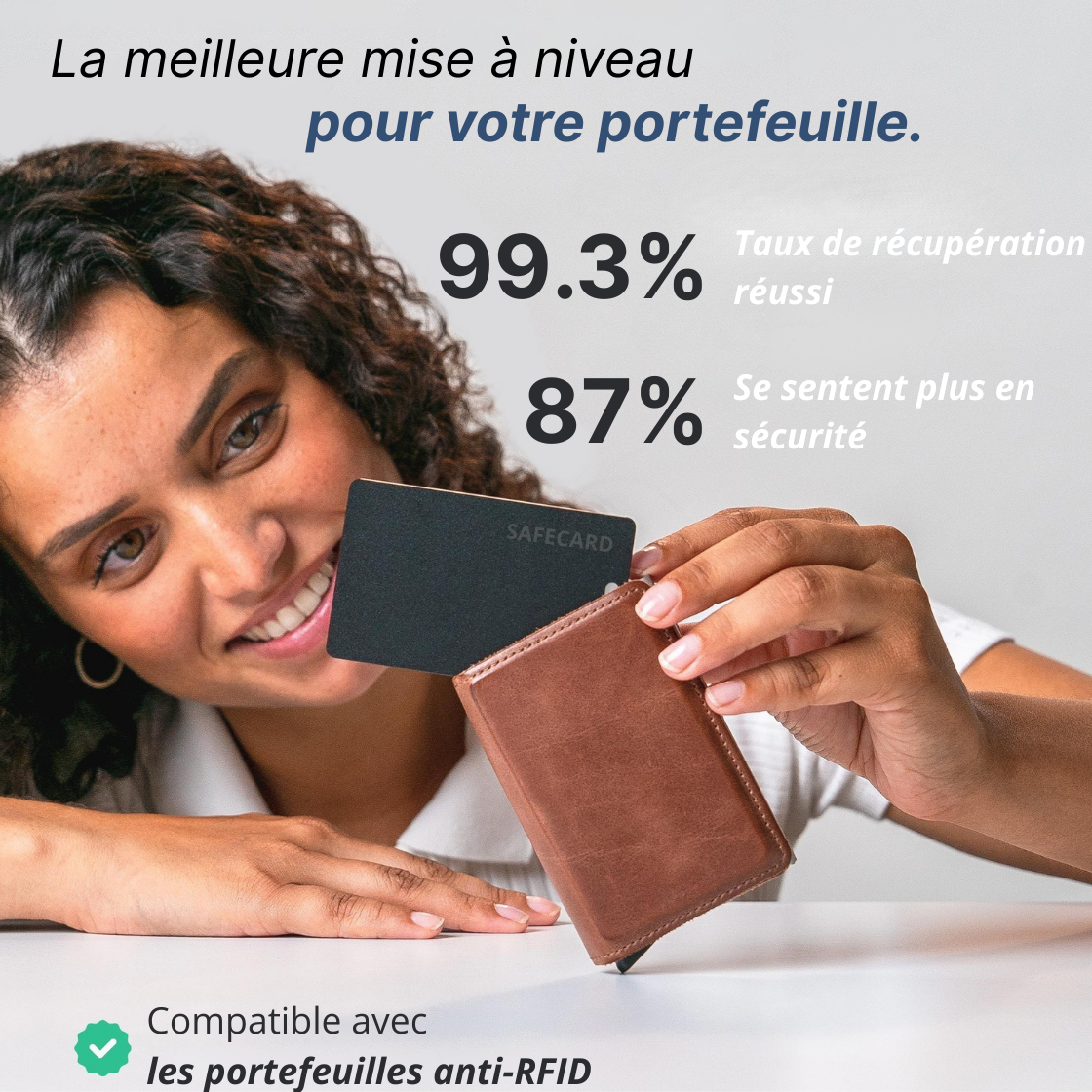 Le tracker Safecard est ultra-fin, glisse facilement dans n'importe quel portefeuille.