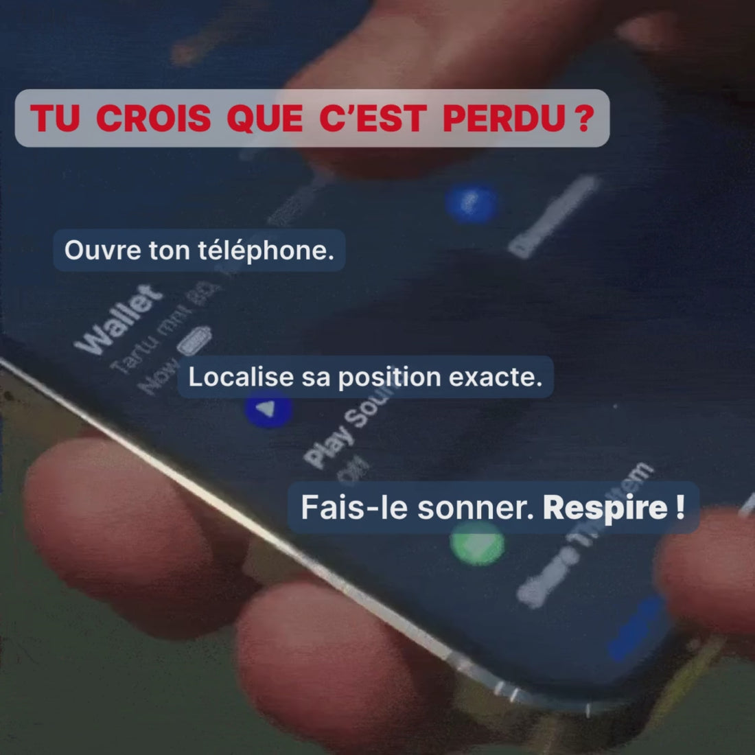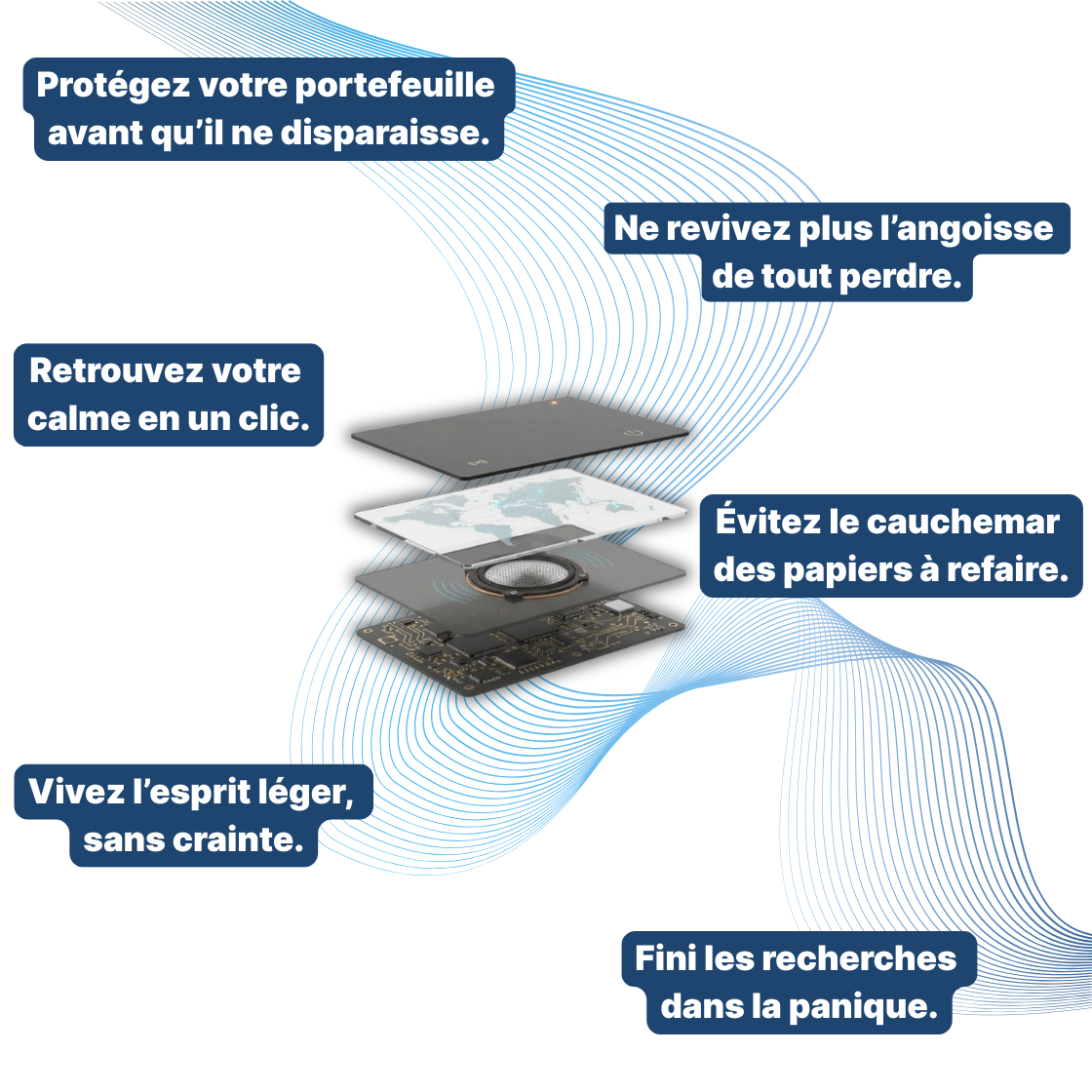 Rangez la simplement dans votre portefeuille, et si vous le perdez vous pourrez trouver sa localisation dans l'application Localisation sur votre appareil Apple, ou dans l'application FindHub sur votre appreil Android.