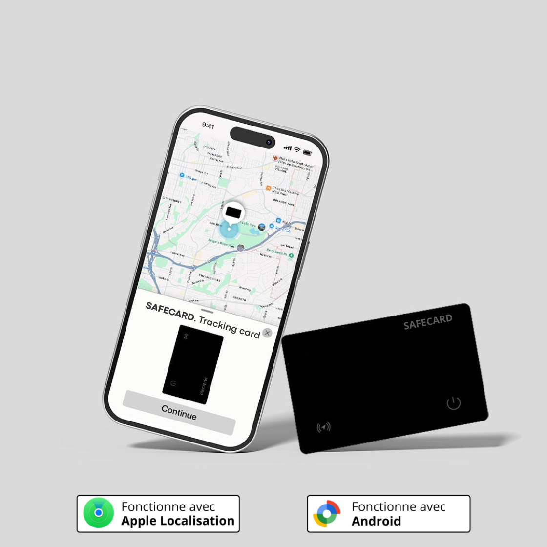 Notre carte se connecte à Apple Localisation ou Android FindHub (Google).